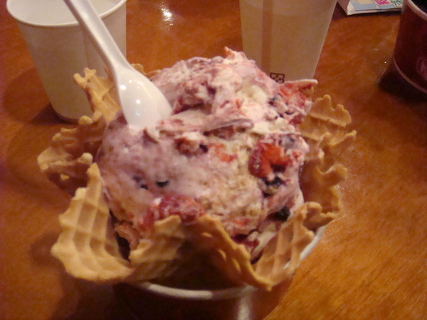 給了一杯香草冰淇淋....淋上一些巧克力醬....灑了一點玉米脆片....